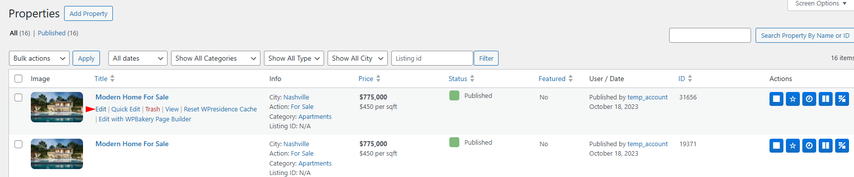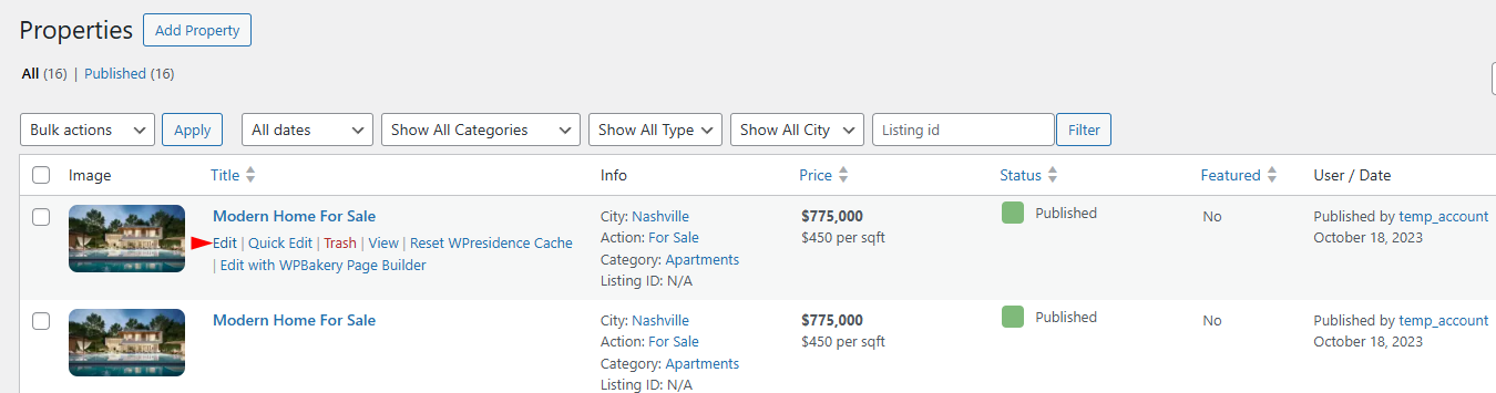 1. Go to Properties → All Properties