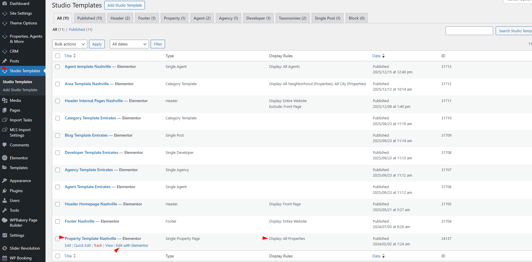 1. Go to WPResidence Studio → Templates