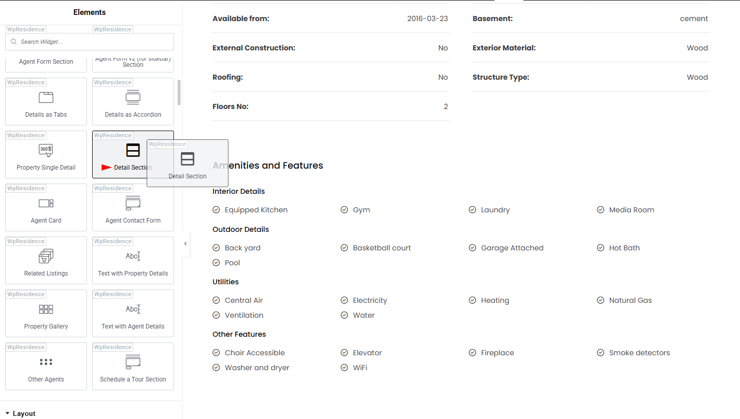 4. Add the Details Section widget to the page