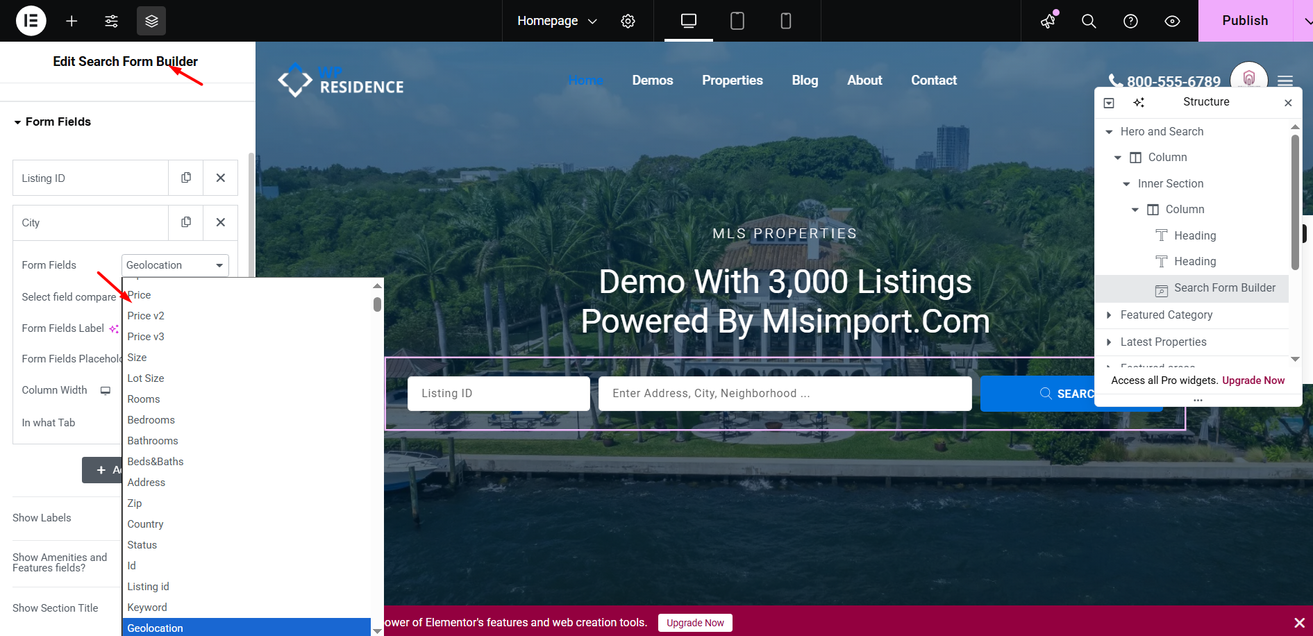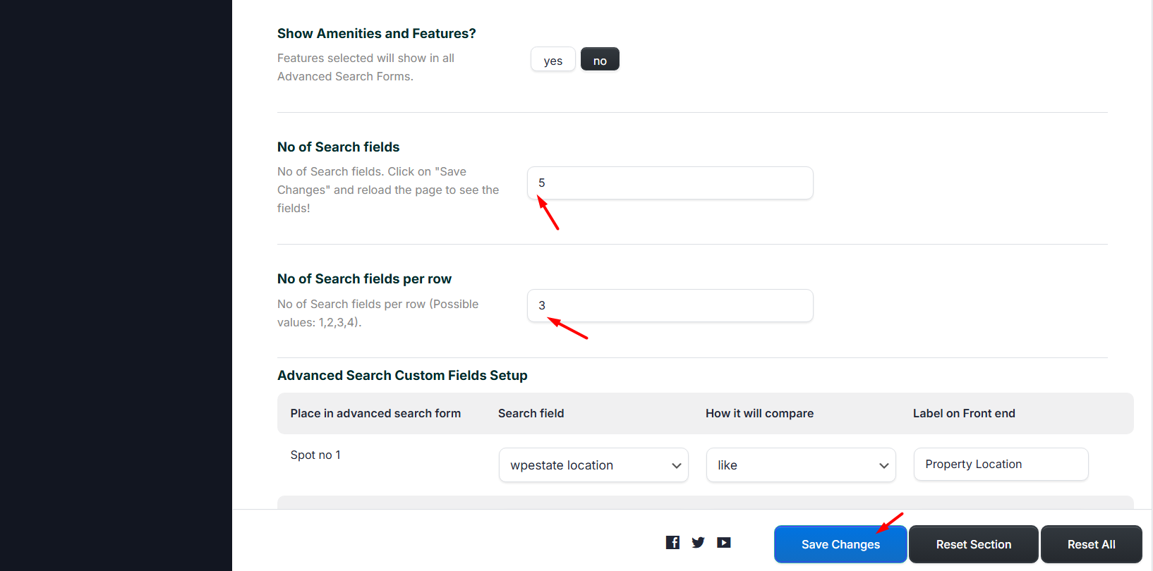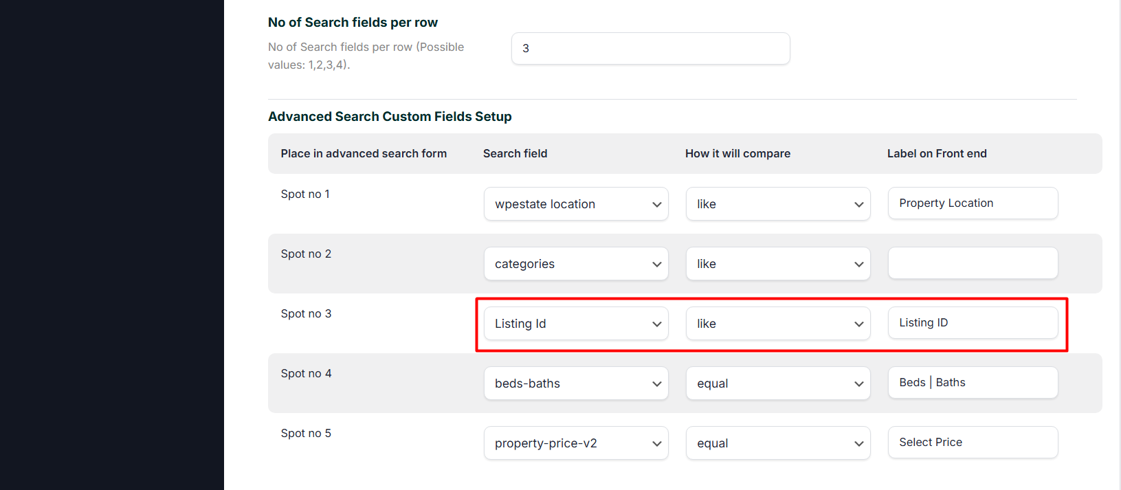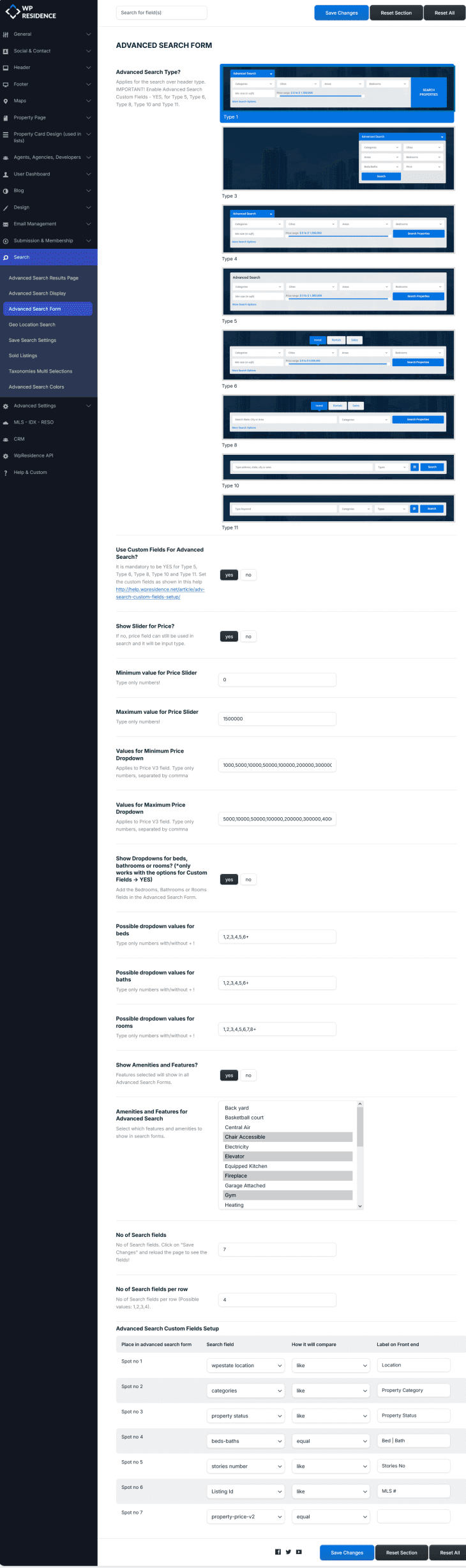 For dropdowns: set Show Dropdowns for Beds, Bathrooms, or Rooms? to Yes.