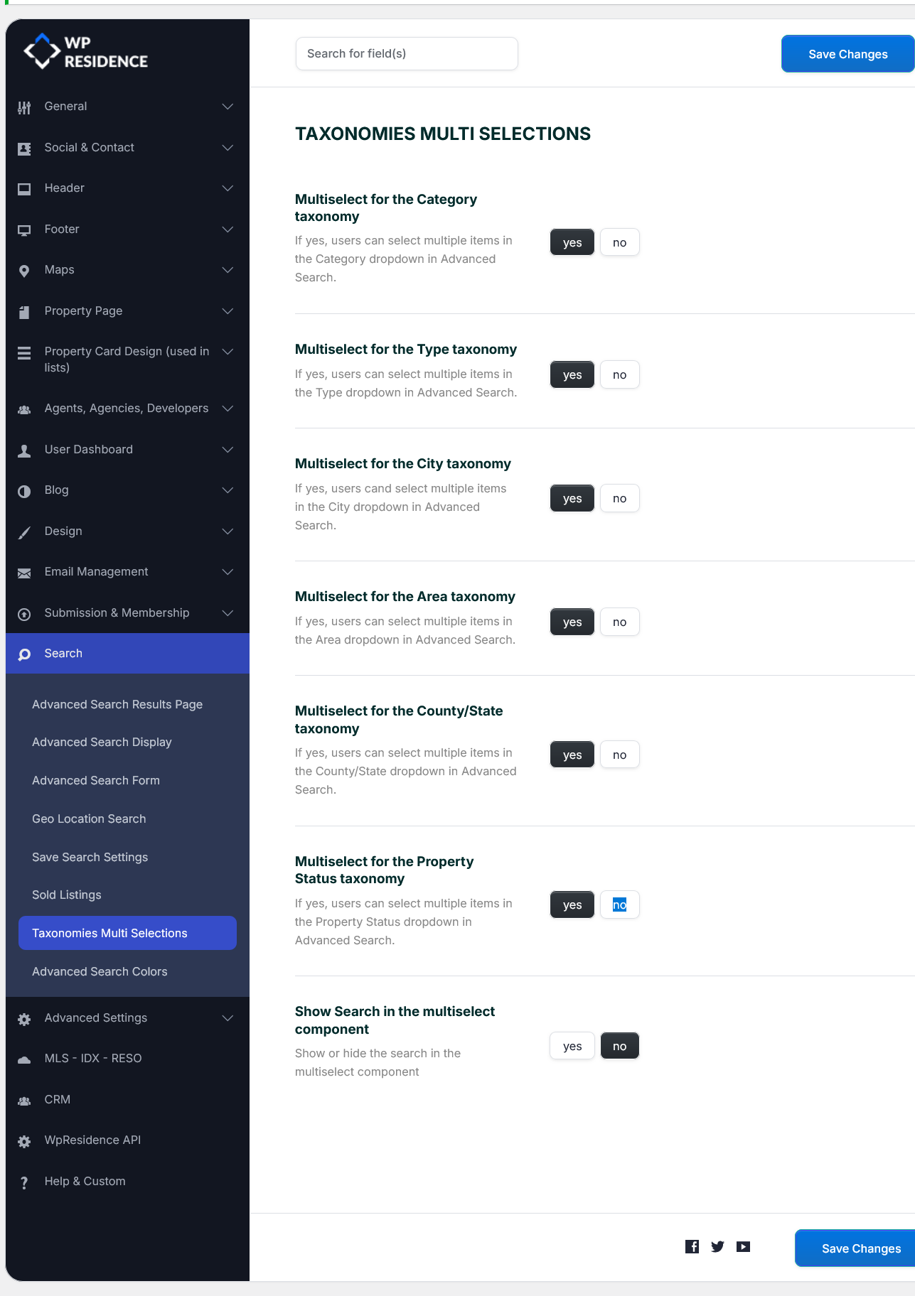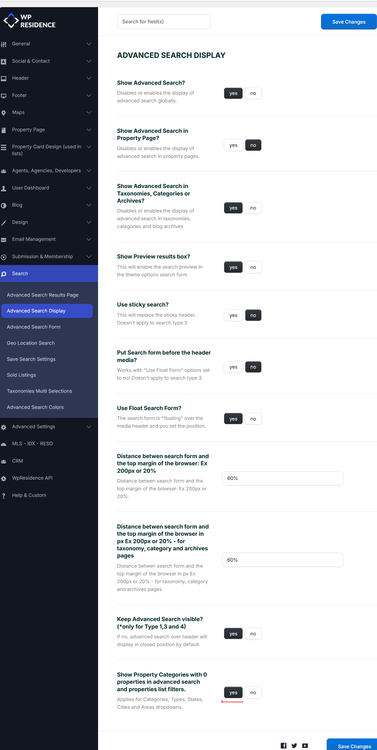 - To exclude categories without properties, adjust settings in Theme Options > Search > Advanced Search Display -> Show Properties with 0 Categories (Yes / No)