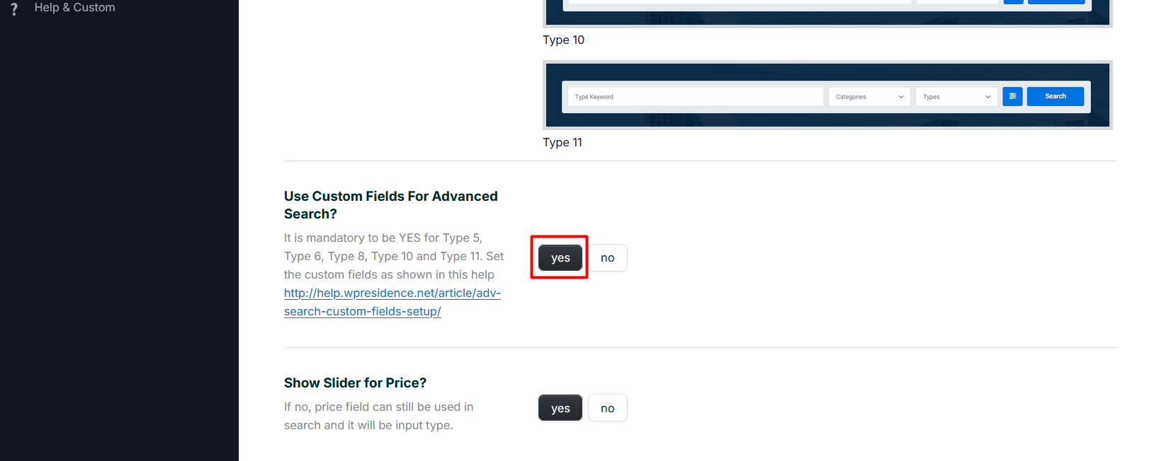 The custom fields used in the search are the same in both Theme Options and custom search forms built with Elementor Search Form Builder.