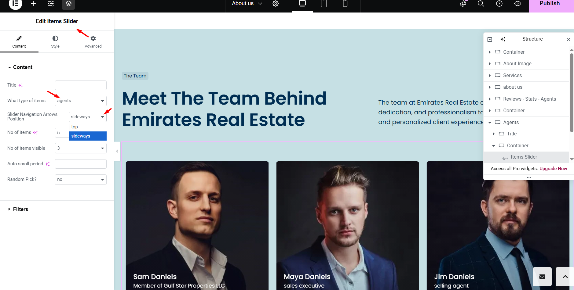- Perfect for pages where detailed information for each agent should be displayed, such as contact info, description, and social links.