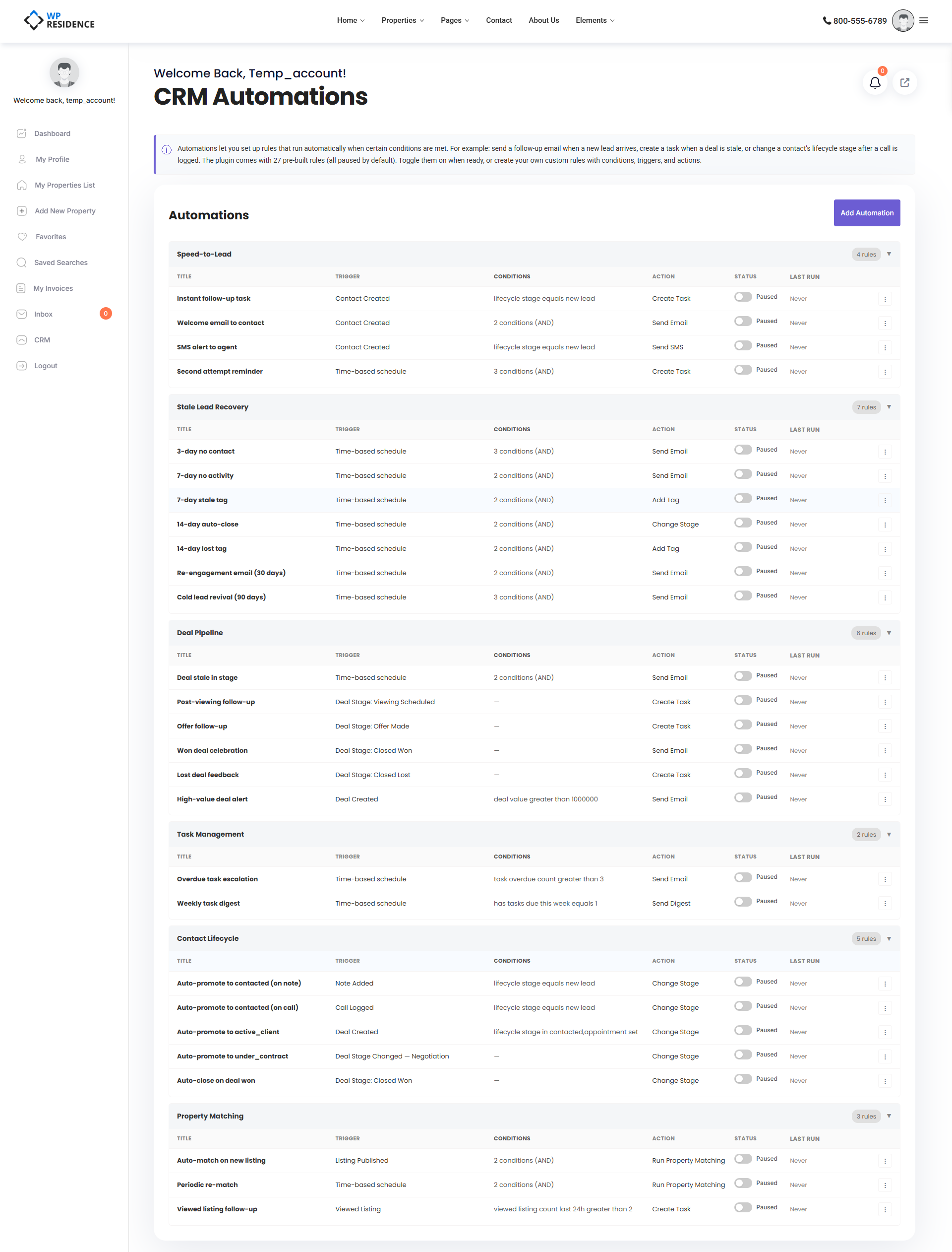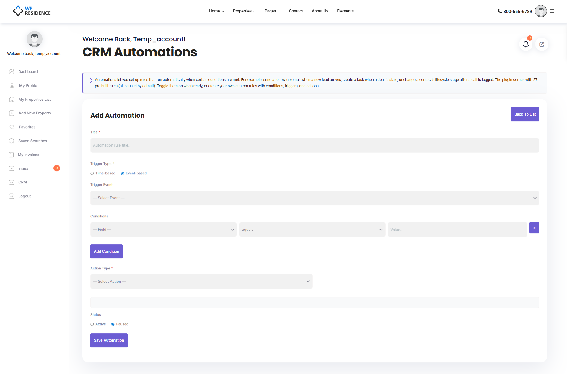 CRM Automations in WPResidence