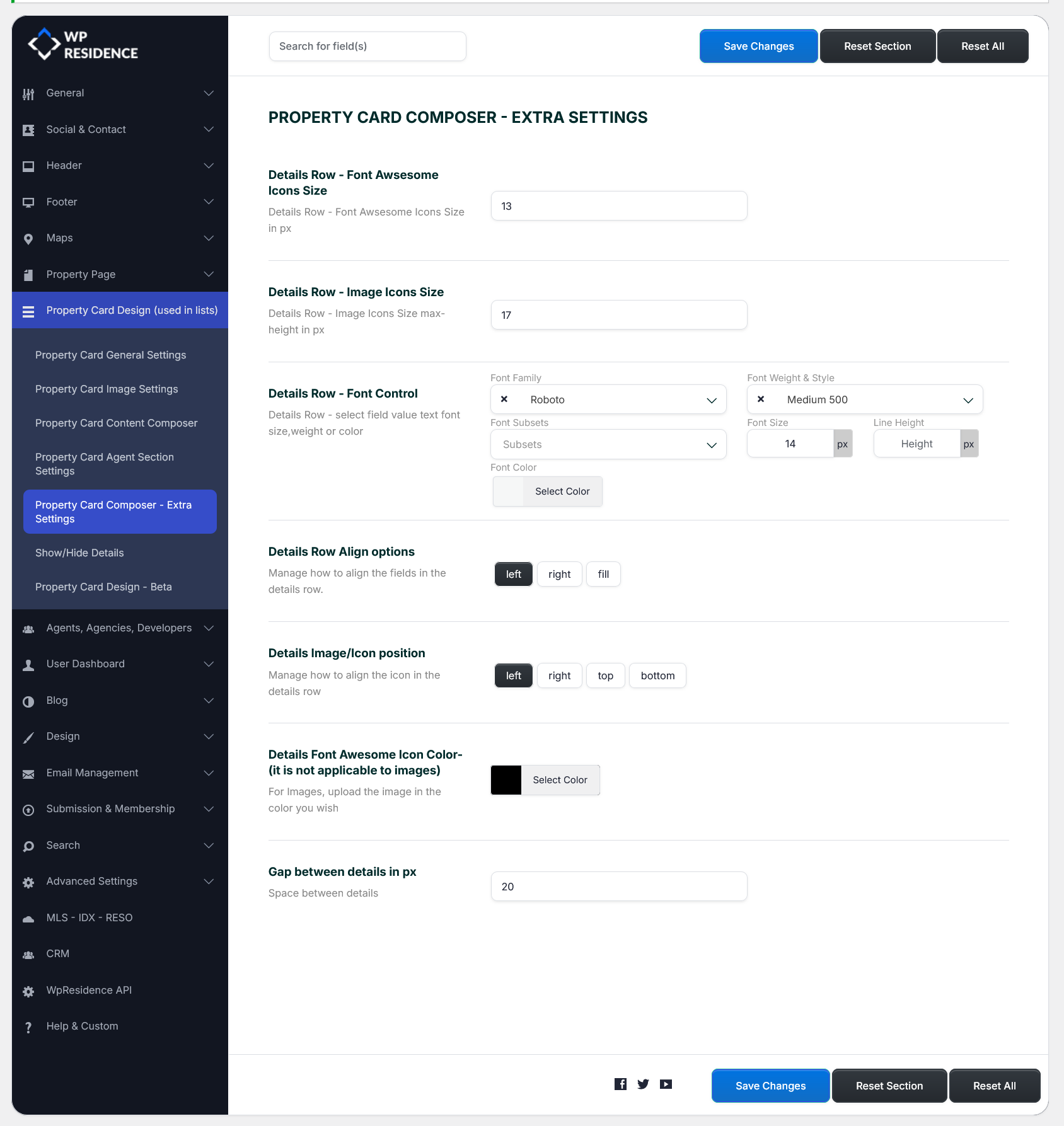 This part focuses on advanced settings that help refine your property cards’ appearance. You can adjust font sizes, icon sizes, image dimensions, and even card layout spacing.