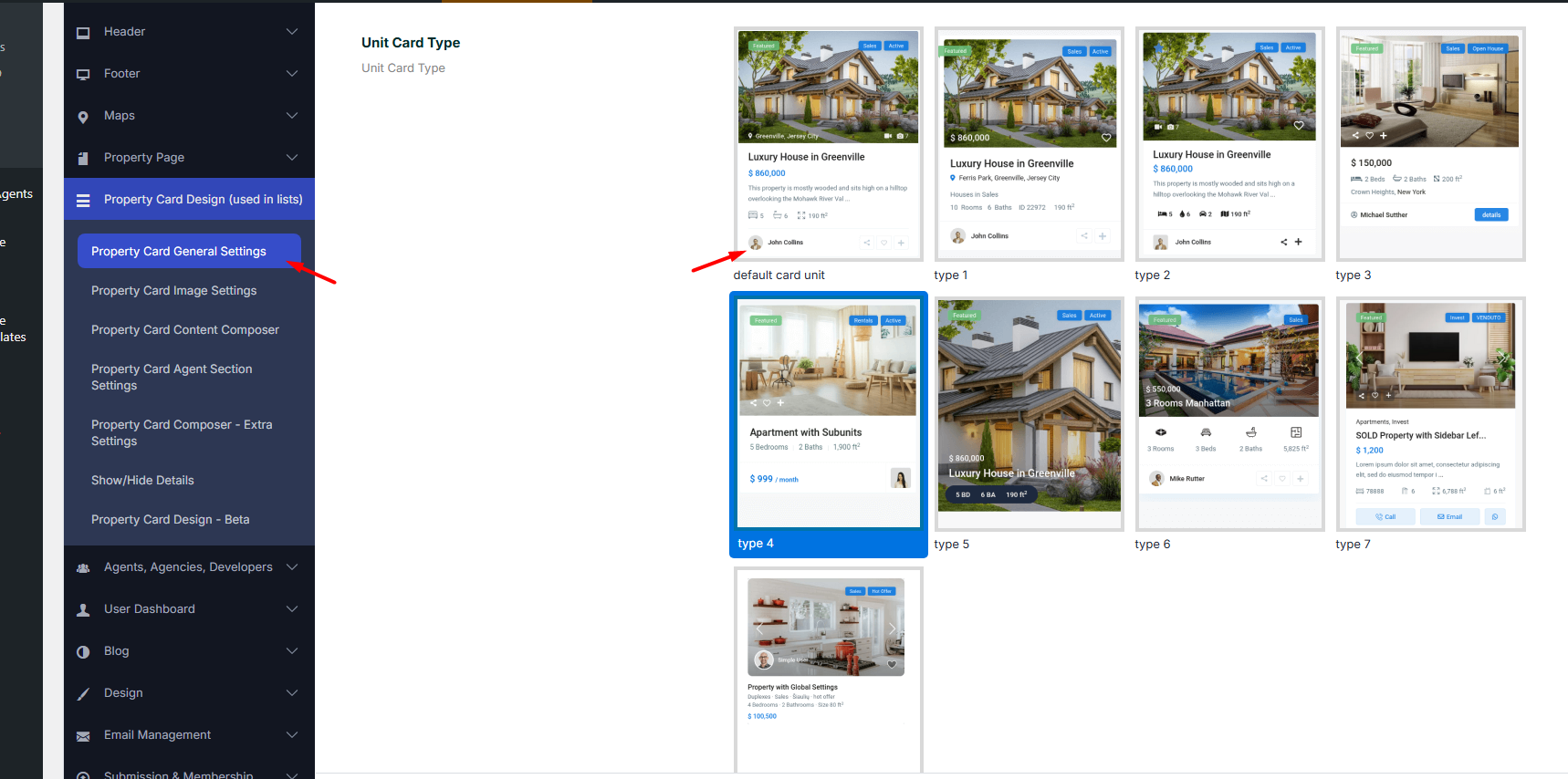 • Card Type Selection: Choose from various card types based on how you want your properties displayed