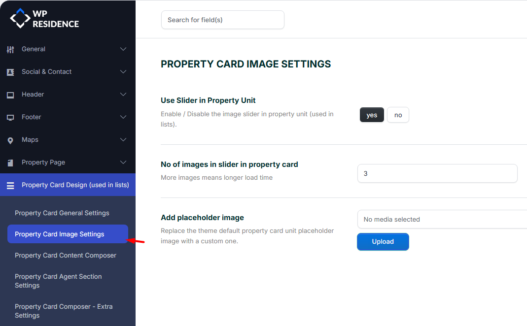 Here, you’ll manage the image settings for your property cards. Learn how to enable the image slider and customize the placeholder images that will appear if no property images are uploaded.