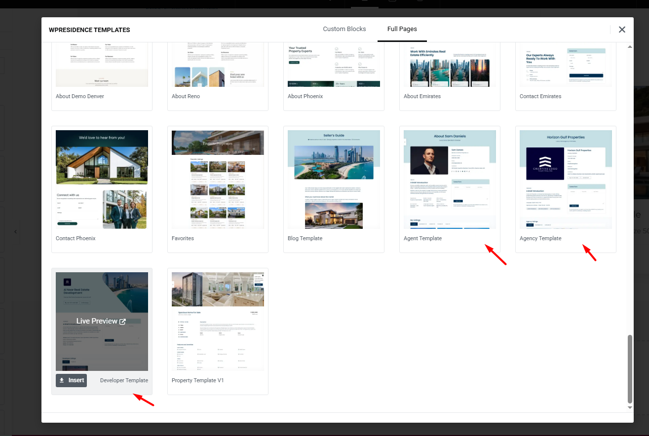 Your template will now be listed under its respective tab (Agent, Agency, Developer).