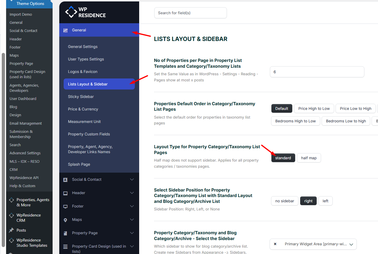 The layout for taxonomy pages can be setup in Theme Options > General > Appearance.