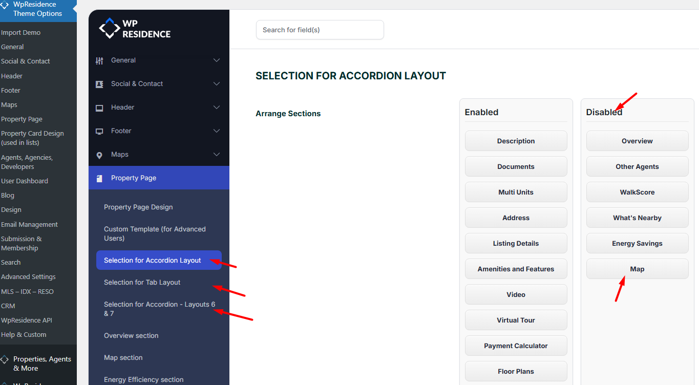 To disable Map from property page content navigate to Theme Options > Design > Property Page Settings and set NO to Show Map on property page option.