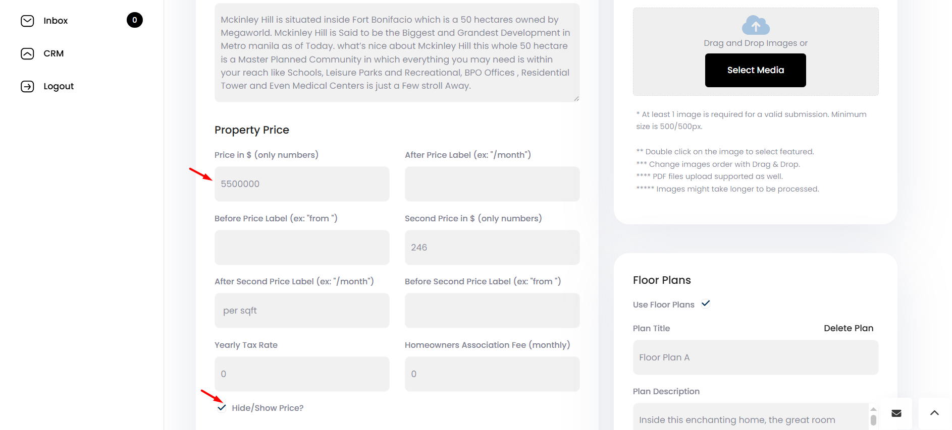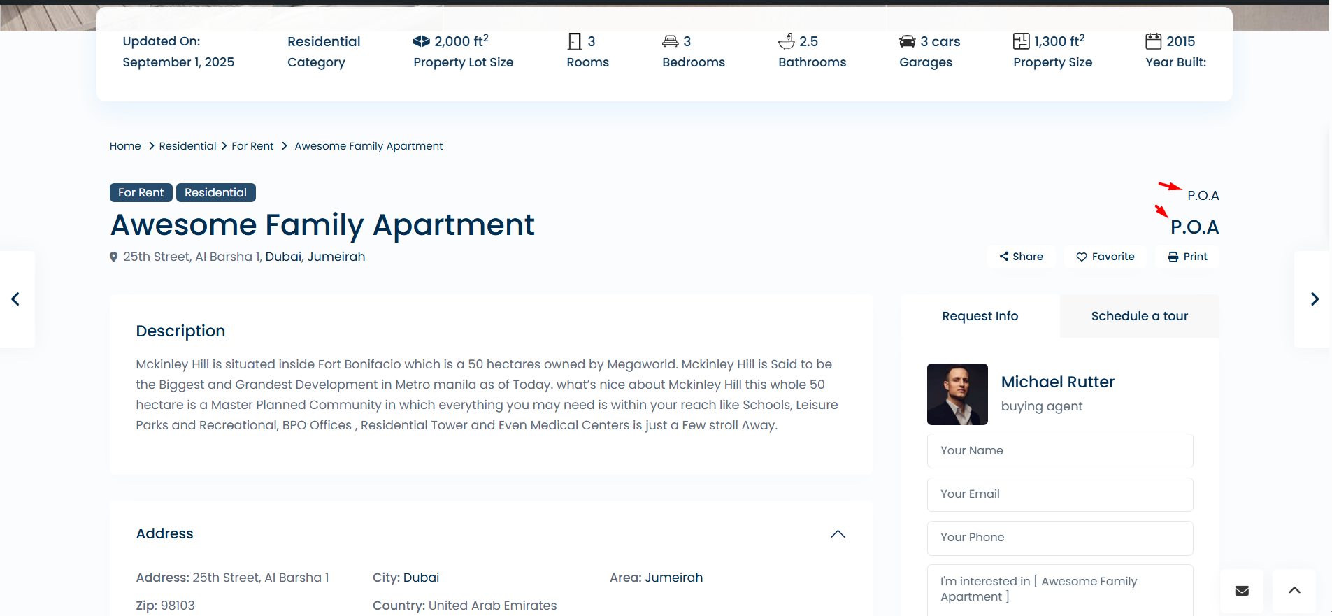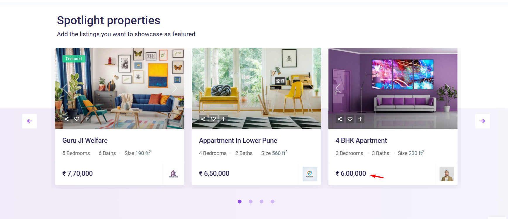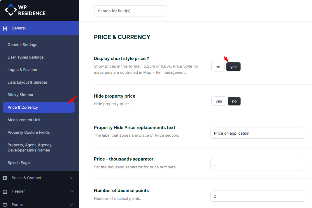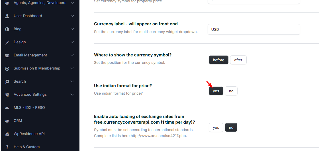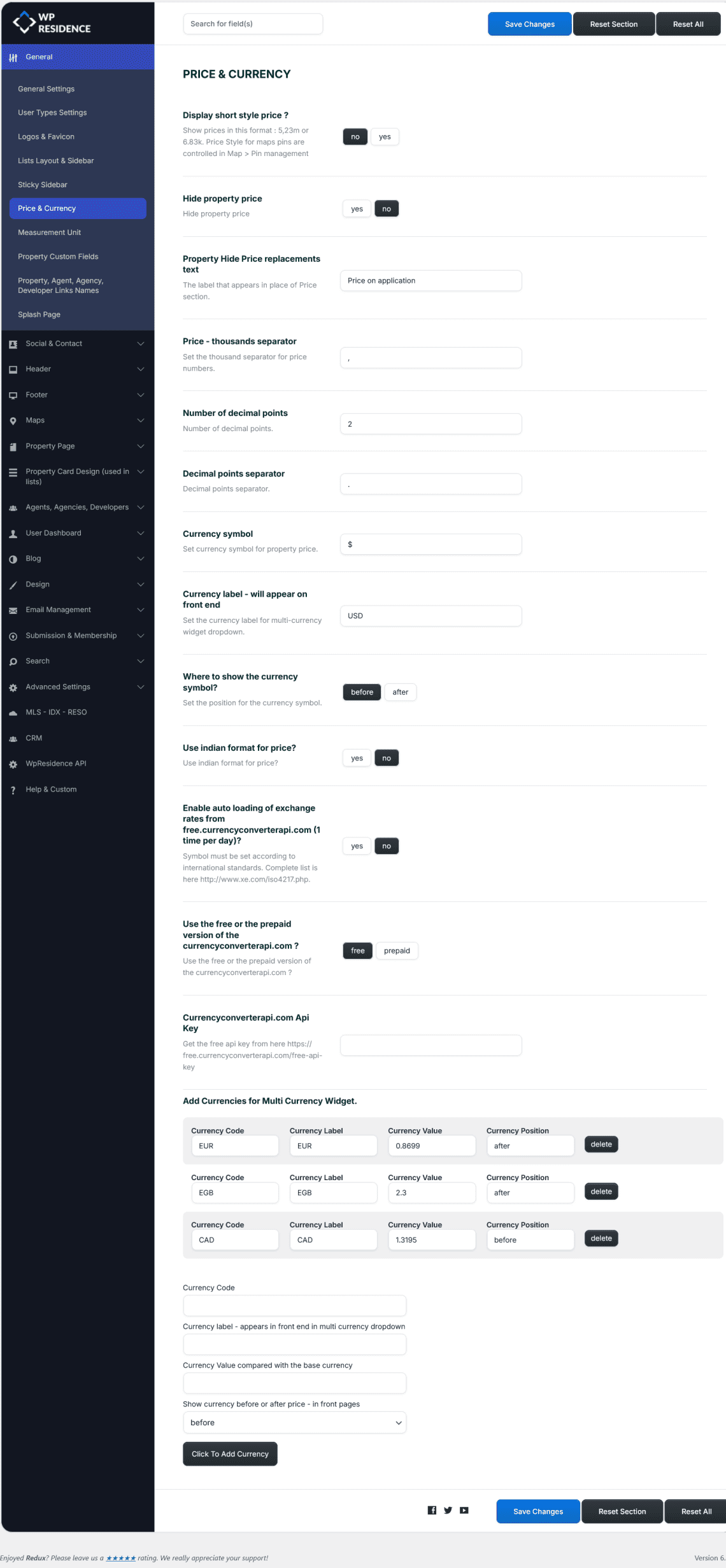 Note: The theme has 1 main currency and 1 price per property only. There is no option to have different prices for each property (like price in Euro and price in USD).