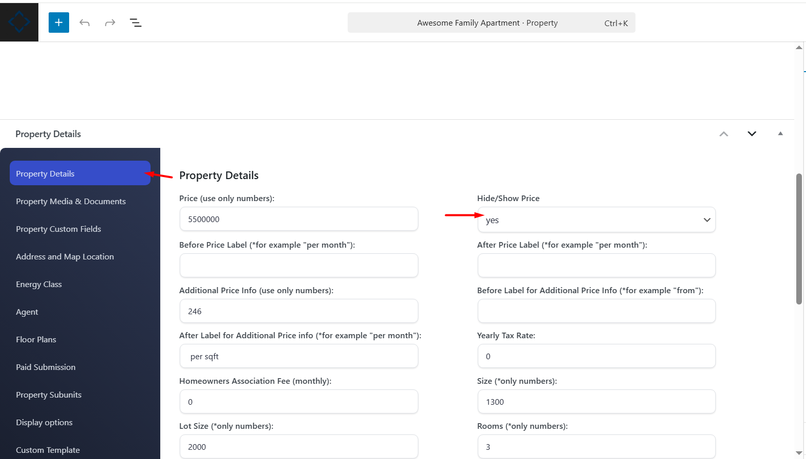 - For specific properties can be set by Admin when managing properties in Wp-admin – Properties – Edit / Add Property