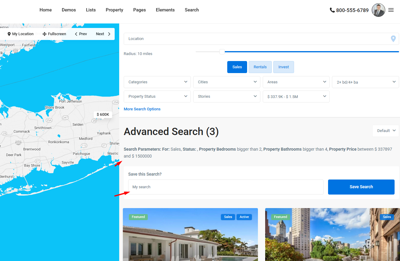 Step2: On the search results page, the user must log in and register to save search. To do this must click the Login button.