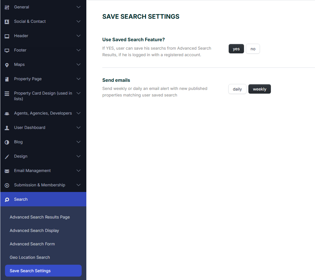 Step2: Enable the save search option and choose if emails about new properties that match saved searches should be sent daily or weekly.