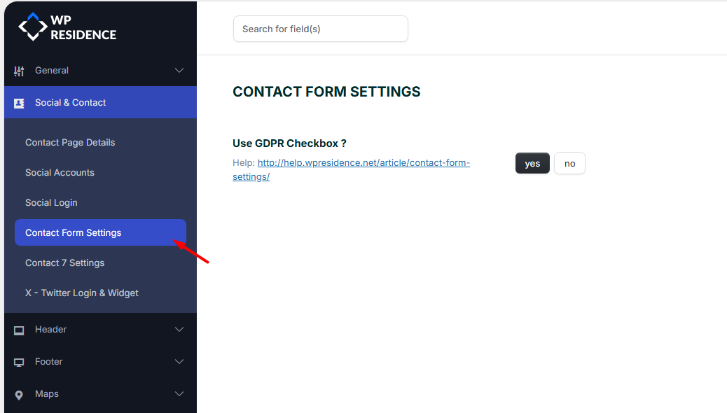 From this section can enable the option to use GDPR Checkbox on contact forms.