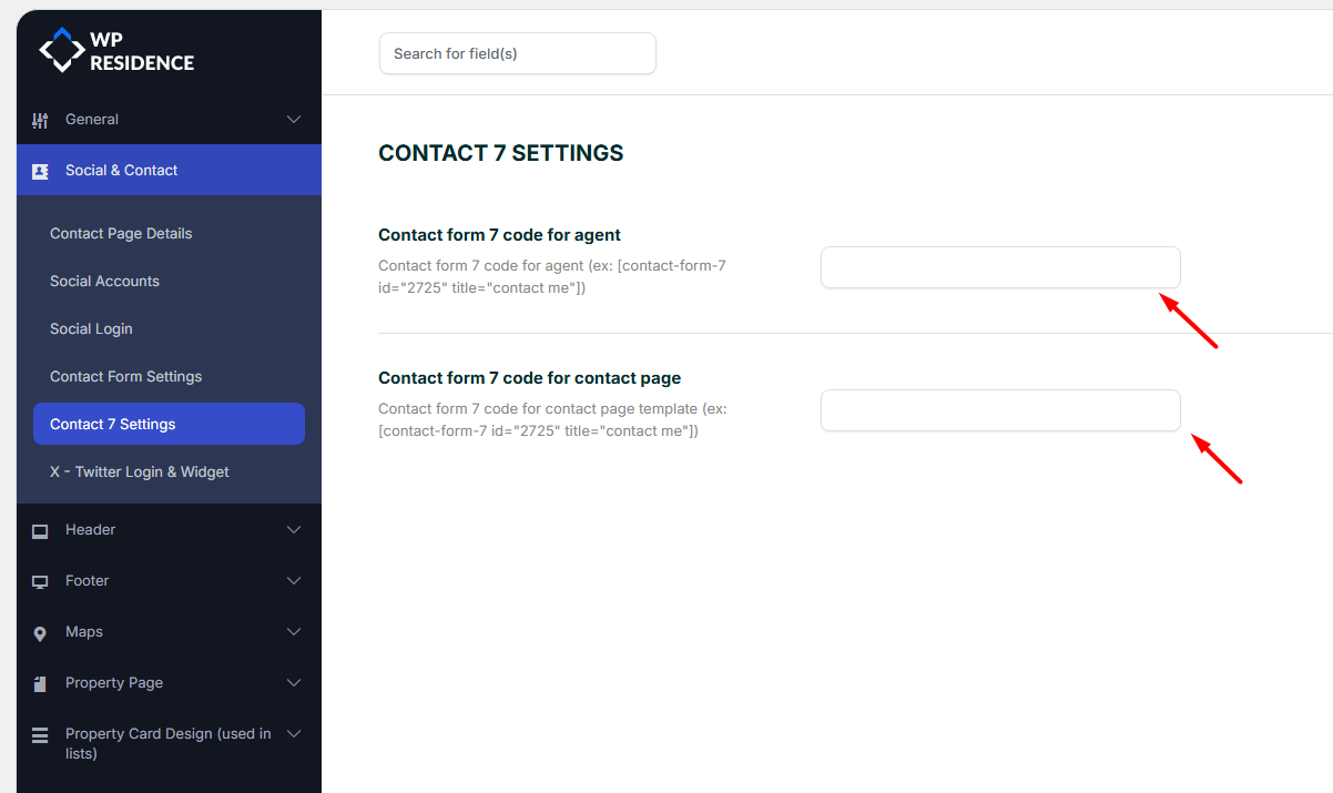If you use this option, the theme default contact will be replaced with a contact form 7 contact form – but the emails will still be sent to agent email address.