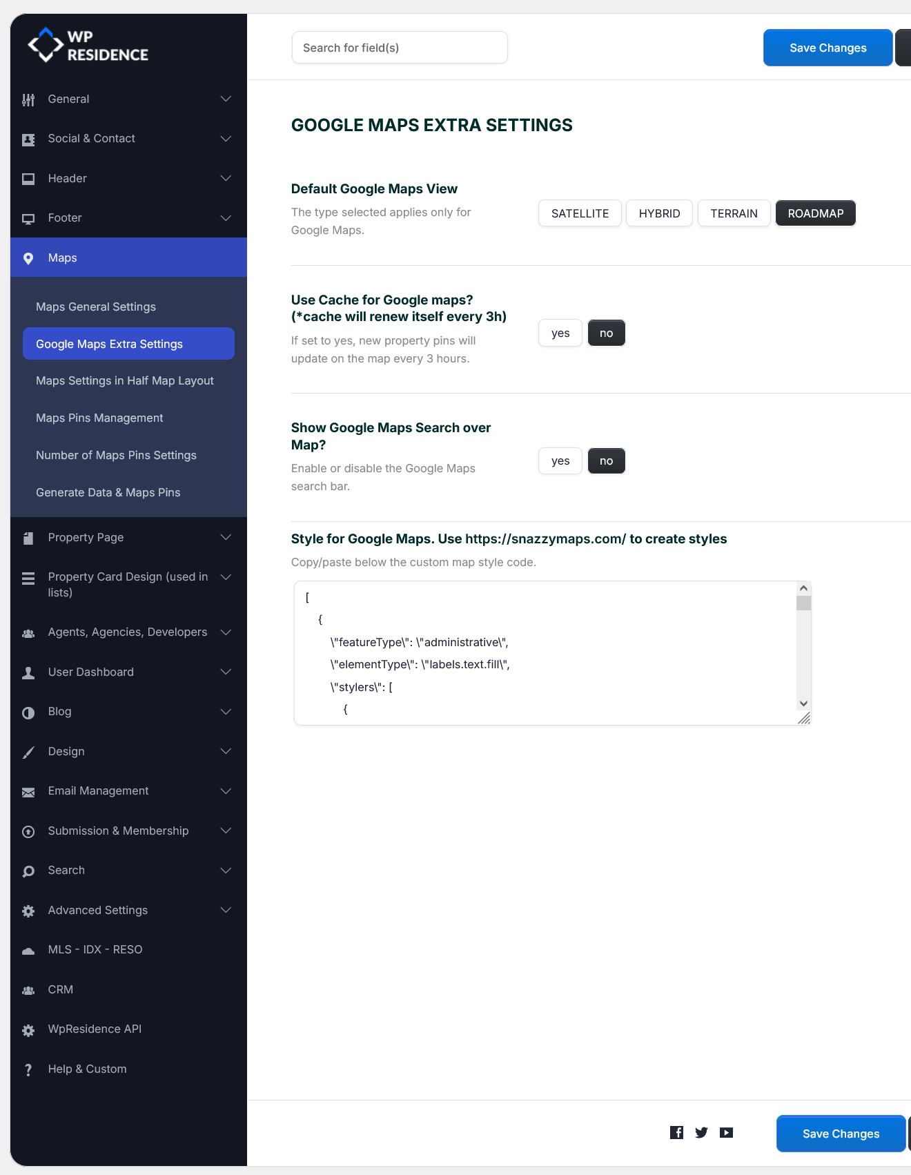 These options allow you to customize how Google Maps is displayed and functions across your website, if you select Google Maps as you maps base in Maps General Settings