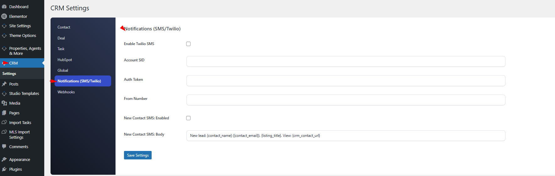 The WPResidence real estate CRM supports SMS alerts through Twilio. When a new lead arrives, the assigned agent’s phone gets a text within seconds — even if they are nowhere near a computer.