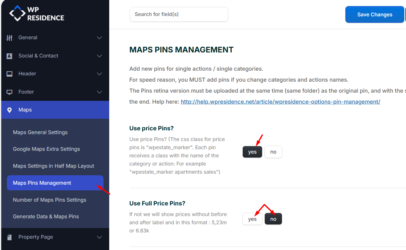 Also from here, you can choose if wish to show full-price pins.  If not we will show prices without before and after label and in this format : 5,23m or 6.83k